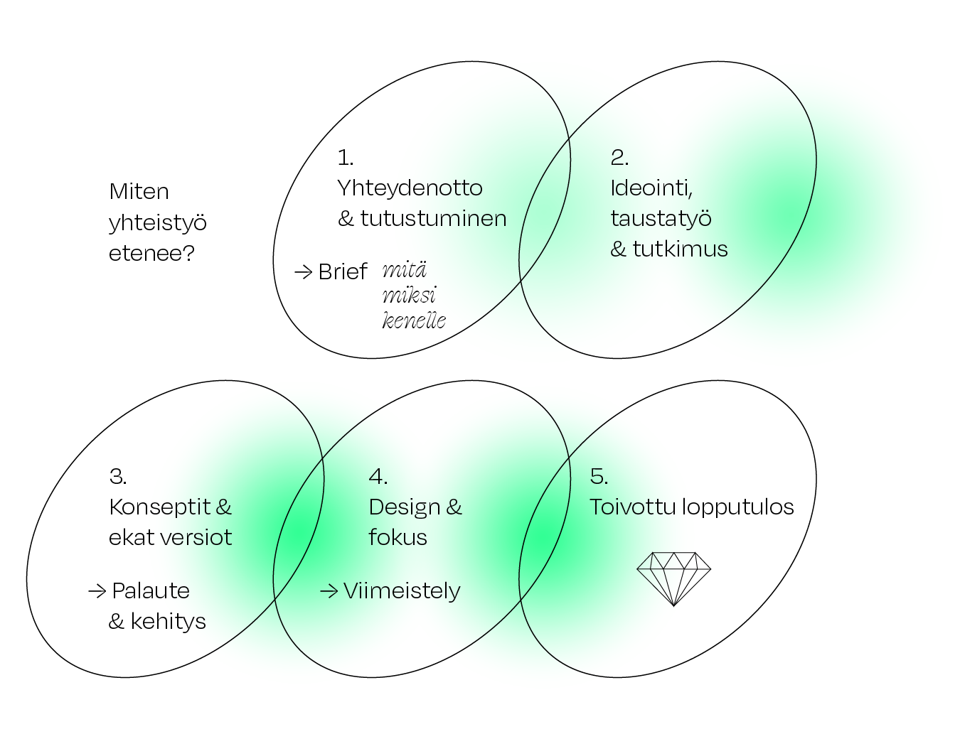 → Tarjoamme apua kampanjoiden, esitysten ja muun visuaalisen materiaalin toteuttamiseen juuri silloin kun sitä tarvitset. Saat nopeasti laadukasta tukea ilman raskaita prosesseja.